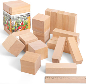 BASSWOOD CARVING BLOCKS FOR WHITTLING - Includes 18 premium basswood carving blocks ideal for wood carving, whittling wood projects, and creative crafts. Perfect basswood for carving beginners, hobbyists, and experienced carvers seeking high-quality carving wood blocks for their workshop or classroom projects.Β PREMIUM QUALITY BASSWOOD BLOCKS: - Soft, smooth-grained, and splinter-free kiln-dried basswood carving blanksβthe preferred wood blocks for carving professionals and beginners. This whittling wood cuts cleanly...